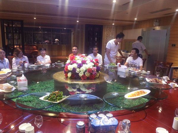 為鼓舞士氣,公司領(lǐng)導(dǎo)在開過總結(jié)會后宴請員工。席間,銷售部田總請大家共同舉杯,為我們?nèi)〉玫某煽?,干?為了今后更加團結(jié)、協(xié)作,干杯!現(xiàn)場氣氛活躍,大家表示在下半年要互相扶持,精誠團結(jié),共同提升,為一起走得更高,更遠(yuǎn)努力、加油!宴會在歡樂祥和的氛圍中圓滿落下帷幕。