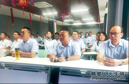 9月3日上午,于鶴壁市東楊工業(yè)區(qū)人元生物技術(shù)發(fā)展有限公司(文中簡稱人元生物)二樓會議室,窗外一場金風送爽的秋雨方歇,室內(nèi)全體人員正襟危坐、著裝齊整、神情莊重,目不轉(zhuǎn)睛地注視著大屏幕,耳畔傳來自大屏幕的渾厚聲音: